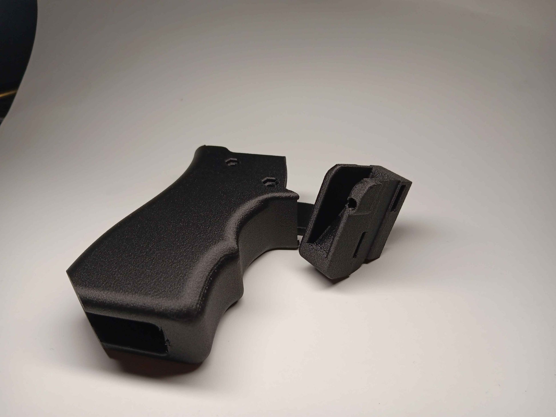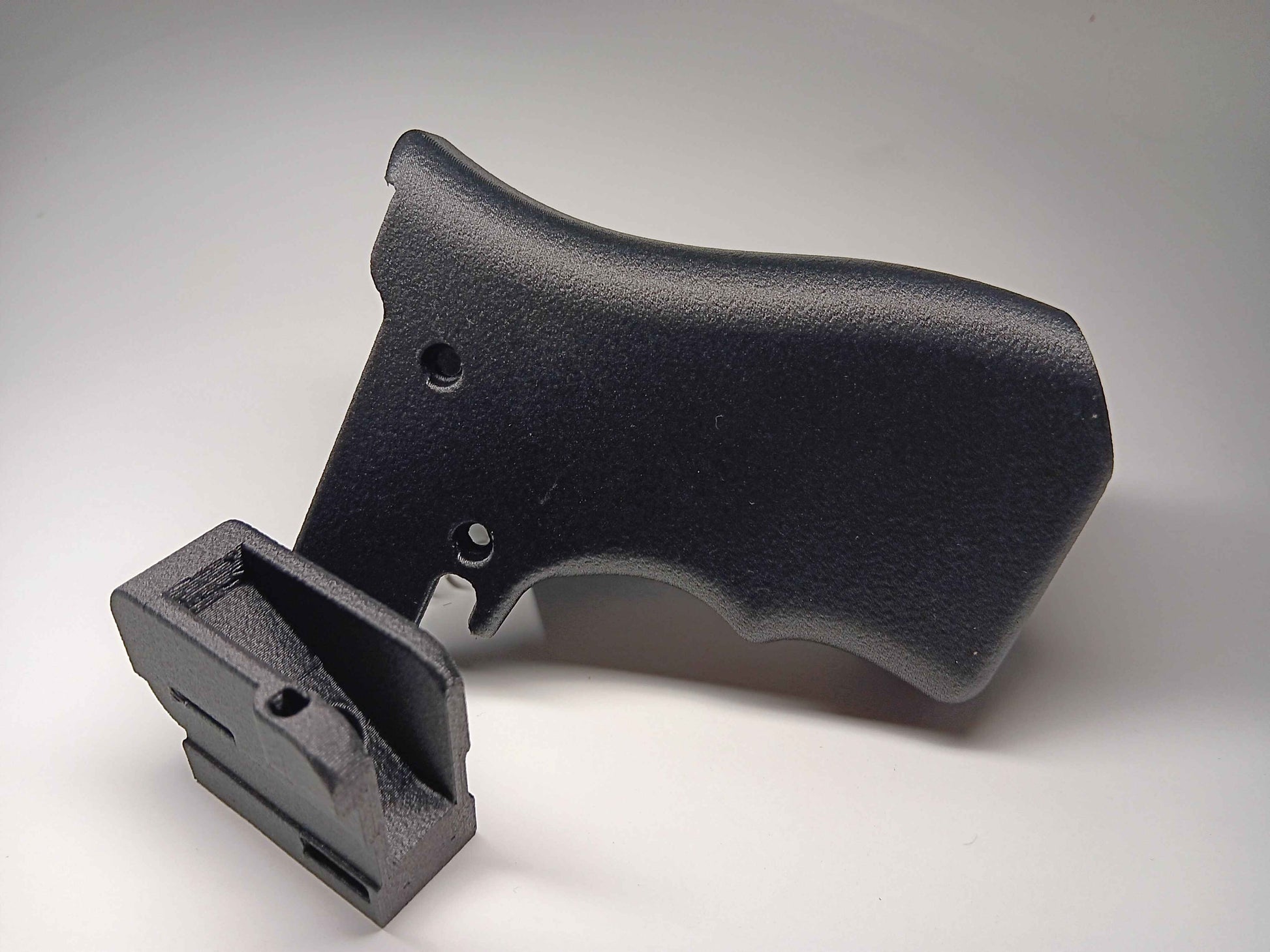 Introducing the slip grip! This grip when installed on the provided carriage will allow you to BUMPFIRE your AR15 or any firearm using the AR style grip pattern without a large stock or additional products! The purpose of bump firing is to allow the user to use the recoil of the firearm to reset the trigger and engage rapidly using inertia to re-engage the trigger via pulling the handguard away from the trigger. Resting your finger on the ledge provided allows you to hit the trigger perfect every time, this is a semi auto function and is 100% legal as you are just taking advantage of the recoil while still shooting 1 round per function of the trigger. Using only 2 m3x30 screws and a slightly trimmed down safety selector spring, this system mounts with the oem grip screw and is ridiculously strong! These are offered in left/right-handed variants and are made to order in pa6cf.